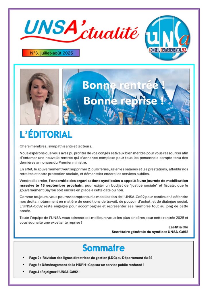UNSA’ctualité N°3 juillet-août 2025 Actualités / UNSA_CD92 UNSA’ctualité N°3 juillet-août 2025 Lire la suite »