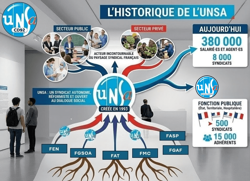 Créée en 1993, l’Union Nationale des Syndicats Autonomes (UNSA) s’est imposée comme un acteur incontournable du paysage syndical français, présent dans le secteur public et privé.